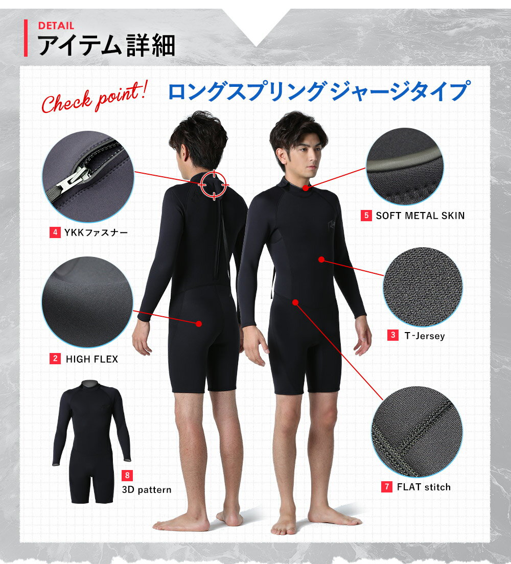 ● RSS SURF ロングスプリング ジャージタイプ 今年こそ上手くなりたい! サーフィンにチャレンジしたい! 海を思い切り楽しむために、まずは体に合ったお気に入りのウェットスーツを手に入れよう。