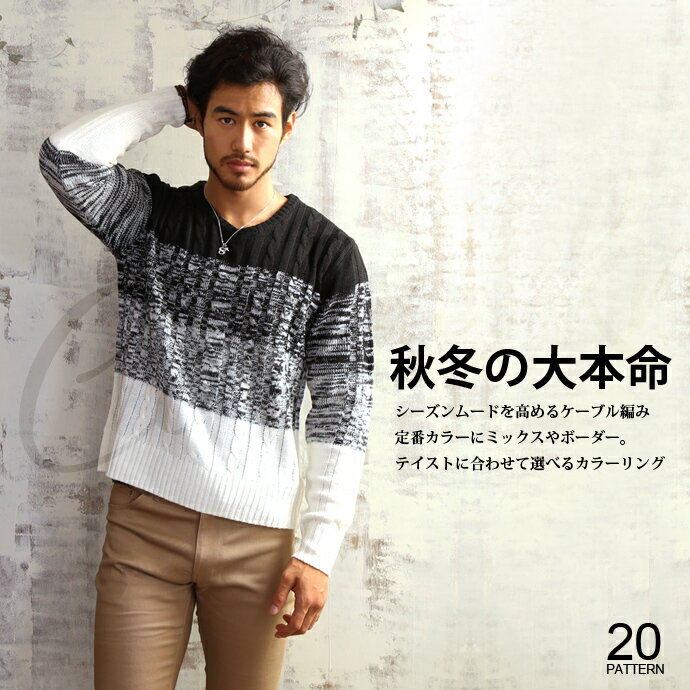 【送料無料】 ニット メンズ クルーネック&Vネックケーブル編みアランニット アランニット トップス ニット セーター メンズ ケーブルニット Vネック クルーネック ボーダー 無地 メンズファッション インプローブス