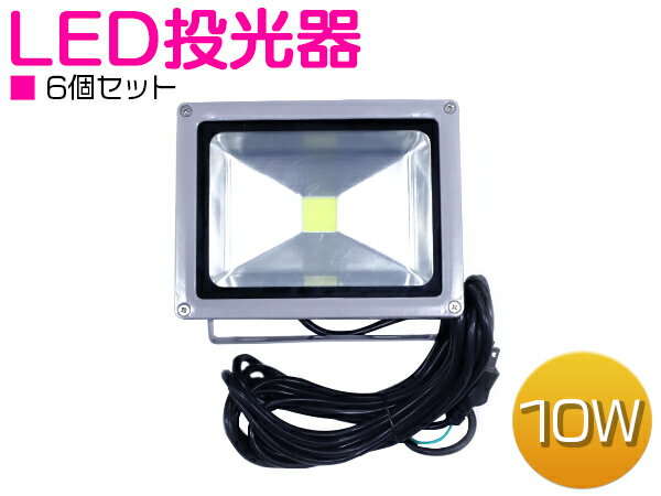 ※お得【6個セット】 防水 LED投光器 10W AC100V 5mコード付 ホワイト発光 白 6000K 6000ケルビン アルミ シルバー 家庭用コンセント対応 【屋内灯 屋外灯 看板灯 LED照明 駐車場 ナイター 船舶 作業用 照明 舞台照明 集魚灯 ワークライト スポットライト サーチライト】