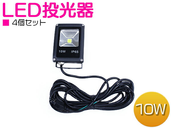 ※お得【4個セット】 防水 LED投光器 10W AC100V 5mコード付属 ホワイト発光 白 6000K 6000ケルビン アルミ シルバー 家庭用コンセント対応 【屋内灯 屋外灯 看板灯 LED照明 駐車場 ナイター 船舶 作業用 照明 舞台照明 集魚灯 ワークライト スポットライト サーチライト】