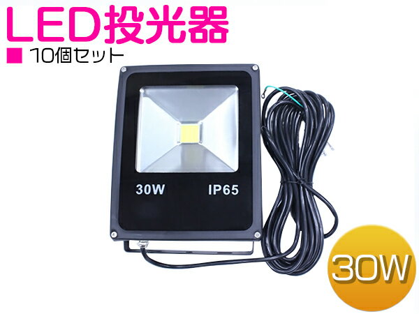 ※お得【10個セット】防水 軽量 薄型※LED投光器 30W AC100V 5mコード付属 ホワイト発光 白 6000K 6000ケルビン アルミ ブラック 家庭用コンセント対応 【屋内灯 屋外灯 看板灯 LED照明 船舶 作業用 照明 舞台照明 集魚灯 ワークライト スポットライト スリム】