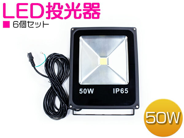 ※お得【6個セット】防水 軽量 薄型※LED投光器 50W AC100V 5mコード付属 ホワイト発光 白 6000K 6000ケルビン アルミ ブラック 家庭用コンセント対応 【屋内灯 屋外灯 看板灯 LED照明 船舶 作業用 照明 舞台照明 集魚灯 ワークライト スポットライト スリム】